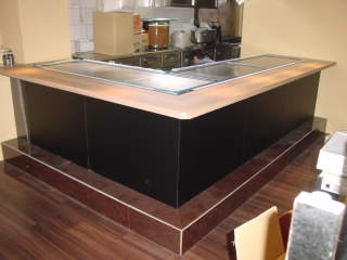 | 上の電気式鉄板焼器をカウンターに組み込んだ時 | ||